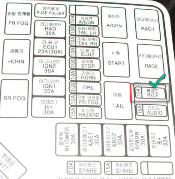 최종적으로.... 보닛 내부의 퓨즈를 확인하다 발견했다.