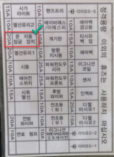 무선 키로 문닫힘/문열림이 동작하지 않는다면?? 이 퓨즈도 함께 확인이 필요합니다~