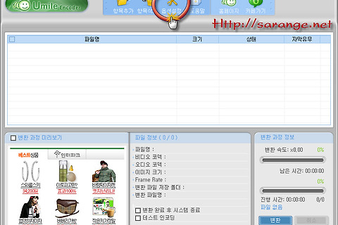 동영상을 휴대폰에 맞게 바꾸어 사용하는 법 알아볼까요? ^^ 블로그지기 경우는 SU200 , 스마트 폰을 사용하기에 TCPMP 등의 프로그램을 사용하여 동영상을 재생하면 되나, 아내의 휴대폰은 SK텔레콤-쿠키폰 이기에 SKM 으로의 파일 변환이 필요합니다. 하연이가 아빠만 오면 '뽀로로 볼까?' 라는 얘길 하는 것이, 아빠 보다 휴대폰을 기다리는 게 아닐까 싶을 정도...ㅠㅠ 그런 이유로 하연맘의 휴대폰에서도 뽀로로가 재생이 되도록,파일 변환을 해야하다 보니, 역시나 편한게 Umile Encoder(유마일 인코더) 랍니다. 프로그램은 프리웨어이며 네이버 등 에서 쉽게 다운 받을 수 있습니다. 최초 실행시 이 창보다 아래의 옵션 창이 먼저 나오으로, 따로 옵션 버튼을 누르지 않고, 바로 설정이 가능합니다^..